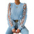 欧美跨境女装 网纱小花雪纺衫女2024春夏圆领显瘦套头长袖上衣