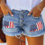 排扣印花贴布牛仔短裤女跨境外贸破洞流苏热裤
