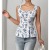 Women's Blue Floral Square Neck Camisole Tie Back Cami Top Waist Cinching Summer Resort Blouse Vacation Beach Sleeveless Top White