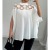Women's White Sheer Mesh Shoulder Blouse Round Neck Oversized Office Shirt Split Cuff Design Polyester Vacation Workwear Top