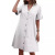 欧美女装连衣裙亚马逊洗水棉短袖中长款单排扣V领宽松纯色A字裙