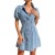 ins热销欧美女士连衣裙盛夏翻领系扣泡泡短袖束腰设计棉牛仔短裙