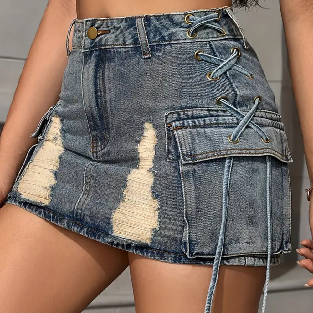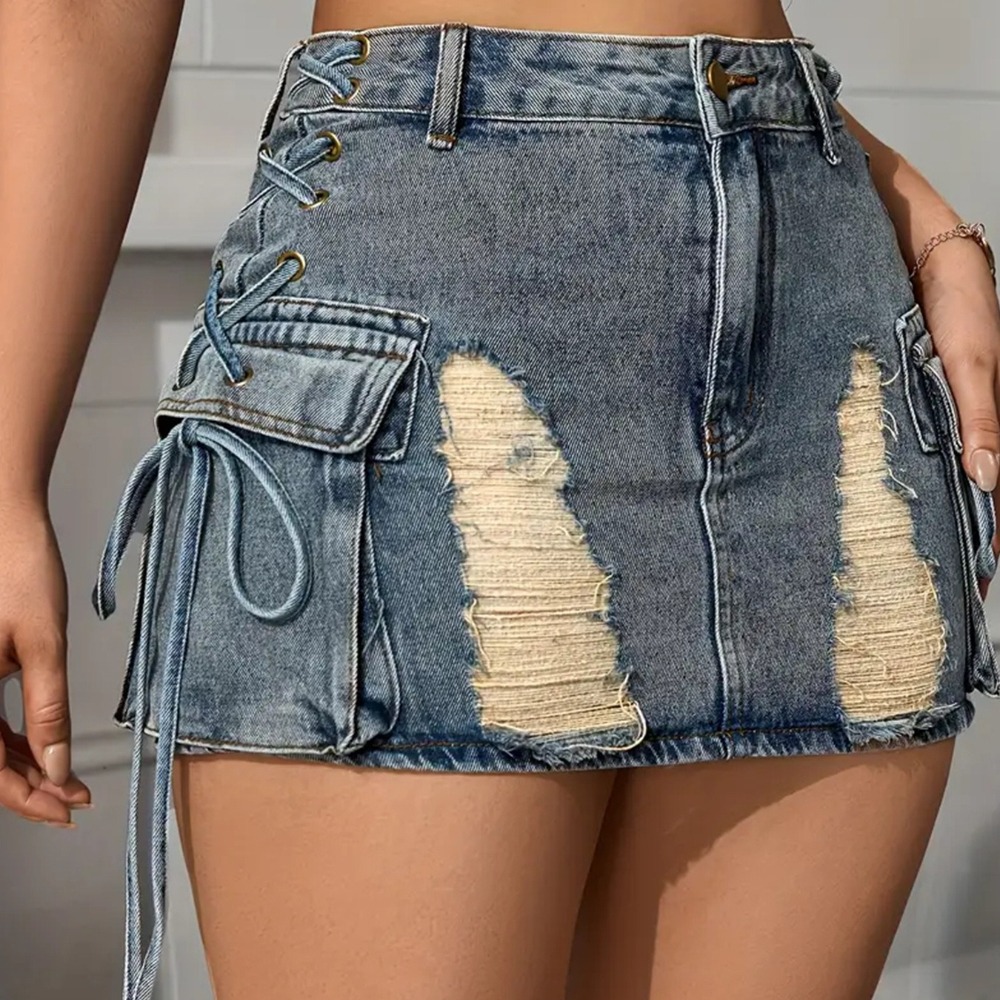 About this item 【RETRO CHARM WITH A MODERN TWIST】 Step back in time with a contemporary edge in our Vintage Distressed Denim High-Waisted Shorts. Crafted to capture the essence of classic 90s denim, these shorts feature a figure-hugging bodycon silhouette, authentically worn-in details, and unique tie-strap accents. Whether you’re heading to a music festival, a casual brunch, or a day out in the city, these shorts blend nostalgia with style for an effortlessly cool look 【PREMIUM DENIM WITH A TIMELESS FEEL】 Constructed from high-quality, medium-weight denim, these shorts offer a perfect balance of durability and comfort. The pre-washed and distressed treatment creates a soft, broken-in texture, mimicking years of wear while maintaining the fabric’s strength. The slight stretch in the denim ensures a snug fit that moves with your body, hugging curves without feeling restrictive. Reinforced stitching at stress points guarantees long-lasting wear, making these shorts a reliable staple in your wardrobe 【FLATTERING DETAILS & FUNCTIONALITY】 High-Waisted Design: The high-rise waistband cinches at the narrowest part of your torso, creating an hourglass shape and elongating your legs. Distressed Details: Artfully placed rips, fading, and whiskering add an authentic vintage look, making each pair unique. Side Pockets: Functional side pockets offer practical storage for your essentials, while the deep cut enhances the shorts’ flattering fit. Bodycon Silhouette: The form-fitting cut hugs your curves, showcasing your figure with confidence 【VERSATILE STYLING OPTIONS】 These shorts effortlessly transition between looks: Casual Chic: Pair with an oversized graphic tee, sneakers, and a denim jacket for a laid-back, street-style outfit. Summer Glam: Team with a cropped camisole, strappy sandals, and a wide-brimmed hat for a beach-ready ensemble. Edgy Look: Layer with a leather jacket, combat boots, and statement jewelry for a bold, rock-inspired look 【EASY CARE & DURABLE QUALITY】 Designed for long-lasting wear, the shorts are machine washable and retain their shape, color, and distressed details after repeated washes. Ideal for fashion-forward women seeking a blend of vintage charm and modern style, our vintage distressed denim shorts are a must-have addition to your year-round wardrobe