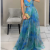 女性性感包裹胸无袖印花网眼透视带长连衣裙度假连衣裙