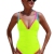 Women's One-Piece 2025 Tummy Control Swimsuit Neon Color Block Swimsuit Deep V-Neck Slimming Swimsuit