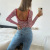 迪芸跨境外贸2024秋冬亚马逊Y2K上衣女装欧美条纹撞色露背长袖T恤