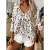 2024欧美跨境春夏女装气质通勤上衣卡其豹纹大V领缩褶七分袖衬衫