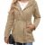 Women's Cotton Hooded Zip-Up Trench Coat Loose-Fit Solid Color Windbreaker with Waist Drawstring
