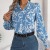 优雅撞色花朵印花灯笼袖翻领衬衫女装