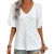 Women's Summer V-Neck Ruffle Half Sleeve Top Hollow Out Floral Solid Color Casual Loose Blouse Top Eyelet Lightweight Breathable Chic T Shirt for Work Office Daily Wear