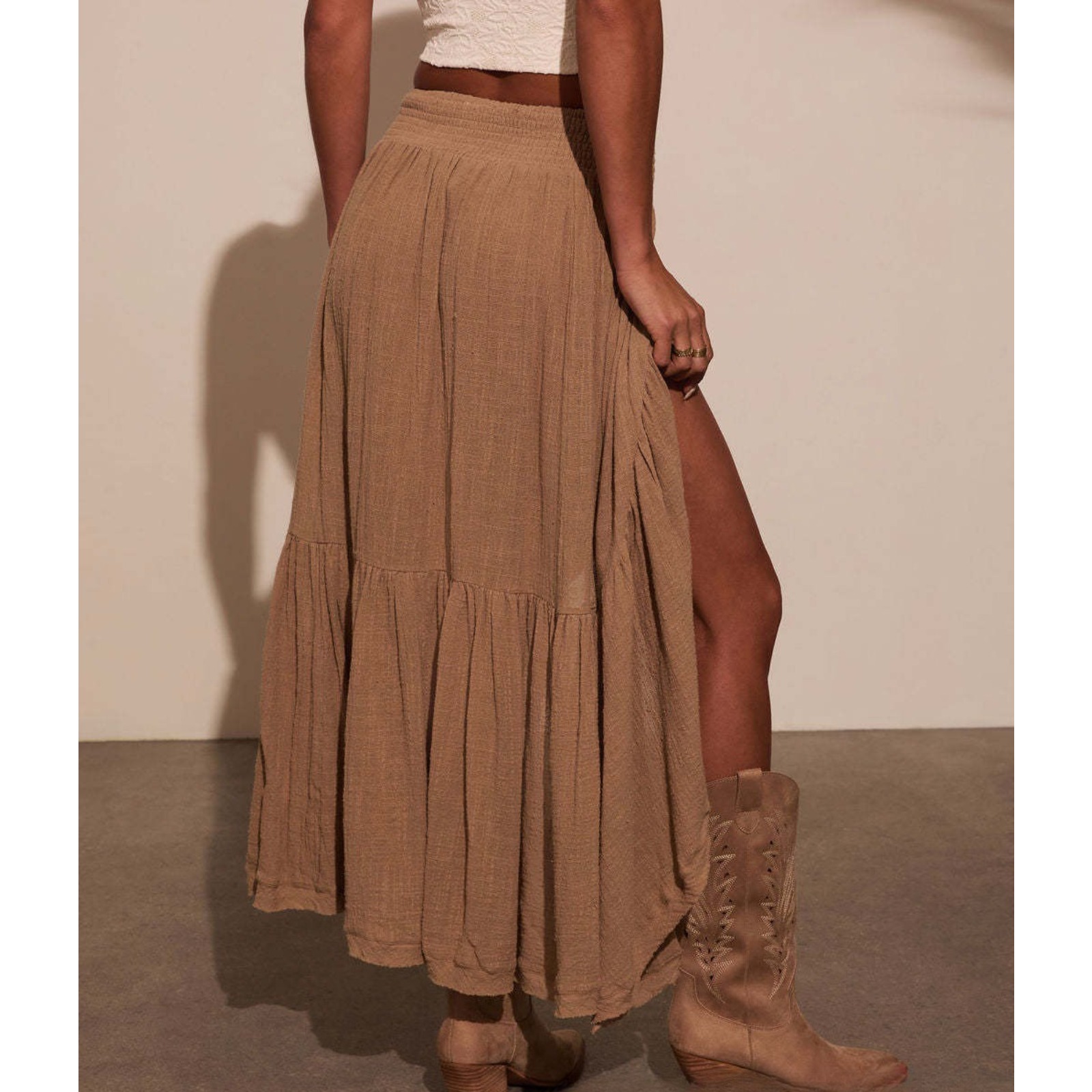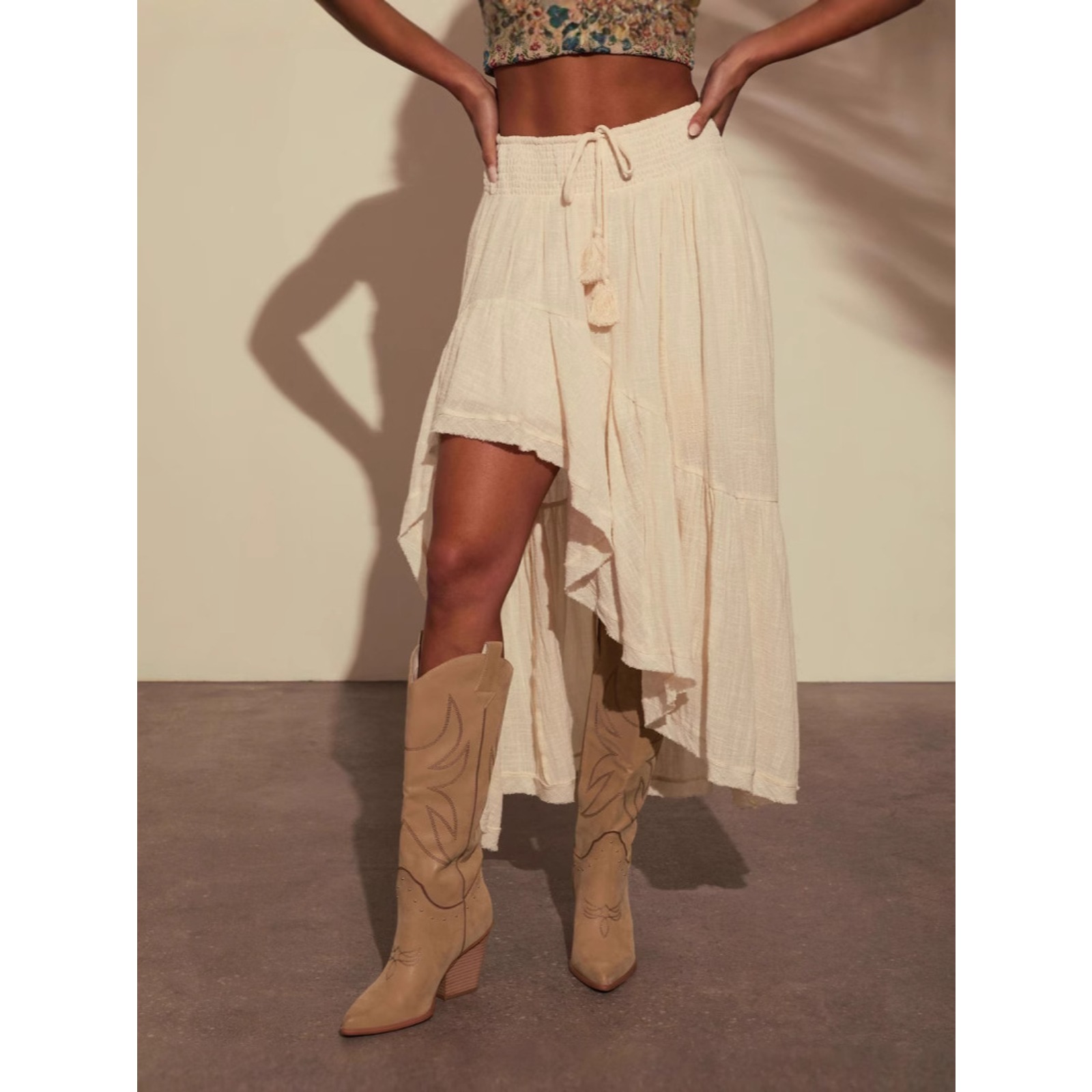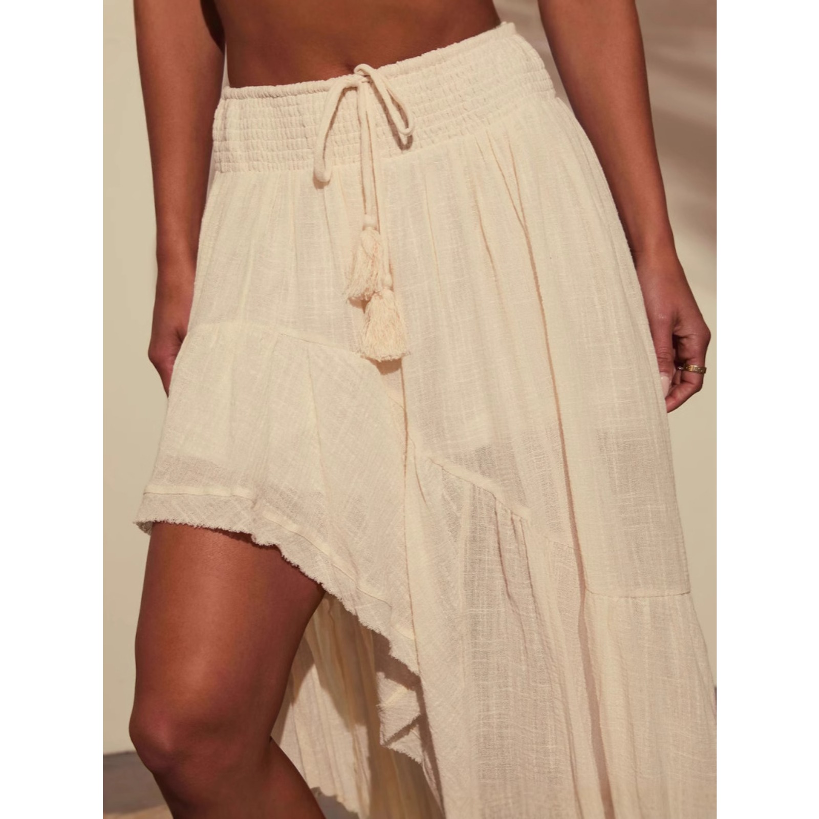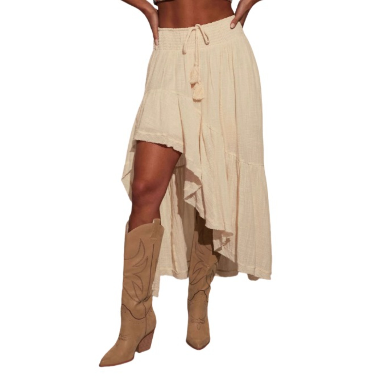 Women's Asymmetrical Skirt High Waist Cotton Casual Wrap Skirt Irregular Hem Elastic Waist Spring Summer Skirt Solid Color