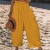 Women's Tie Waist Elastic High Waisted Ruffled Wide Leg Pants with Two Large Pockets Loose Casual Linen Cotton Trousers