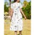 女装爆款圆领花瓣袖短袖中长款印花连衣裙