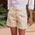 2025 New Women's Cotton Linen Blend Bermuda Shorts Mid-Length Straight Leg Button Front Casual Summer Shorts Natural Fiber Comfortable Pull-On Trousers