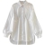 [棉和涤纶混纺面料] 这款衬衫采用棉和涤纶混纺面料制成,手感柔软、透气且经久耐用。棉质保证了皮肤的舒适度,涤纶抗皱且不易变形,是过渡天气的理想选择。 [设计特点] 这款衬衫采用翻领和全扣门襟设计,干净利落,泡泡长袖设计增加了体积感和活动性。宽松的版型非常讨人喜欢,不对称的下摆营造出微妙的视觉趣味。纯色方案保持了其多功能性,在经典结构与现代风格之间取得了平衡。