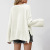 秋冬新款圆领喇叭袖纯色宽松大码圆领女式毛衣女