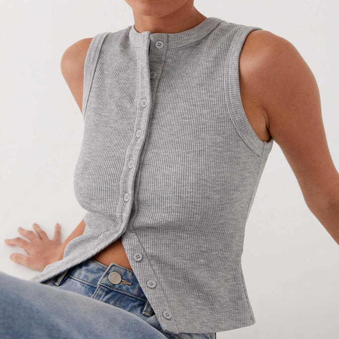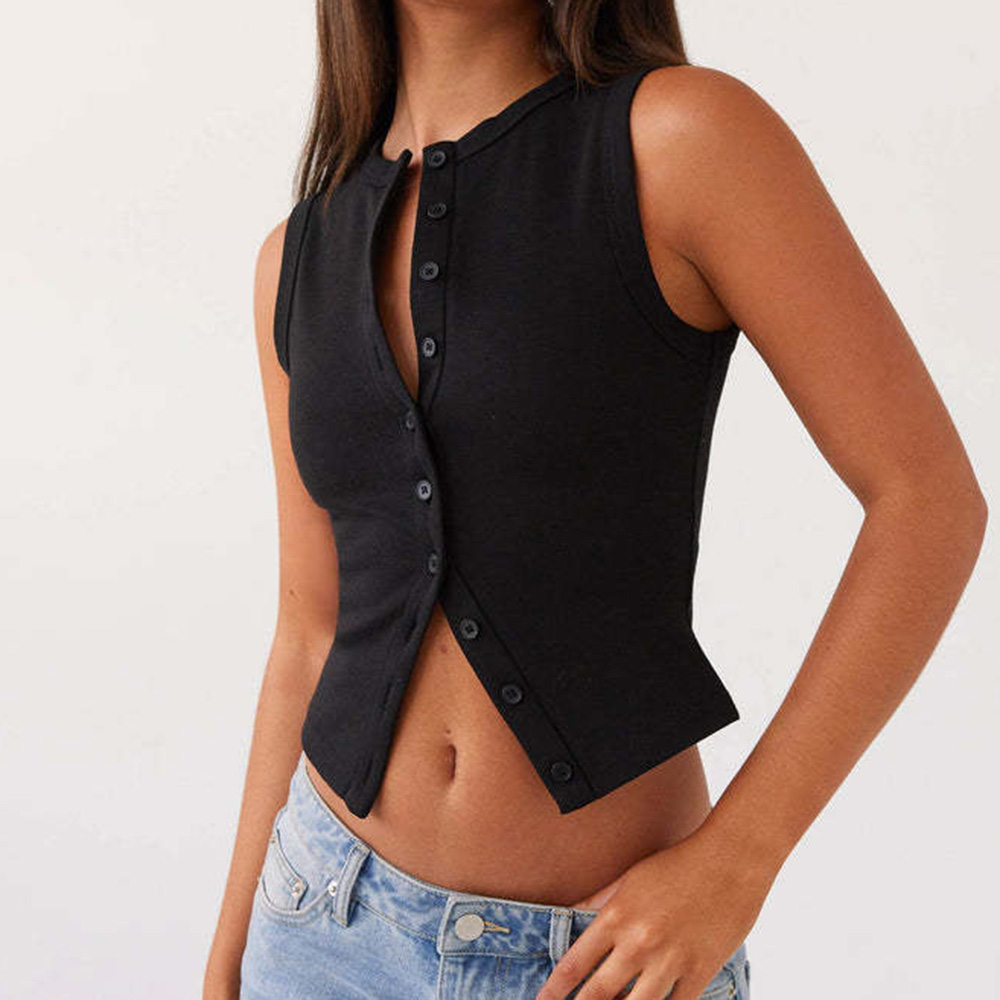 女扣背心背心罗纹夏季背心修身适合开放的前无袖作物衬衫