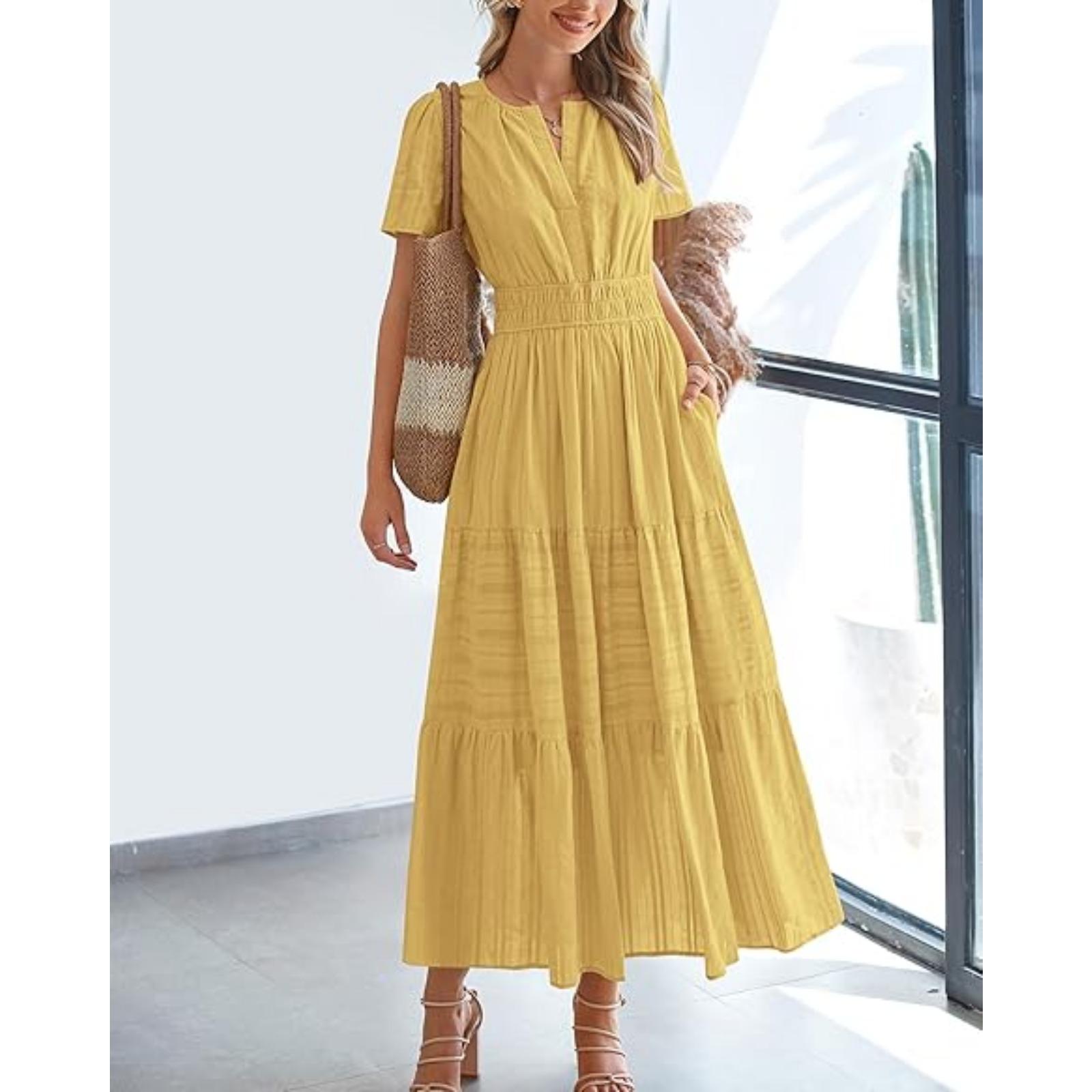 Women's V-Neck Textured Cotton Top Asymmetrical Hem Ruffle Detail Loose Fit Casual Blouse Lightweight Summer Basic Shirt