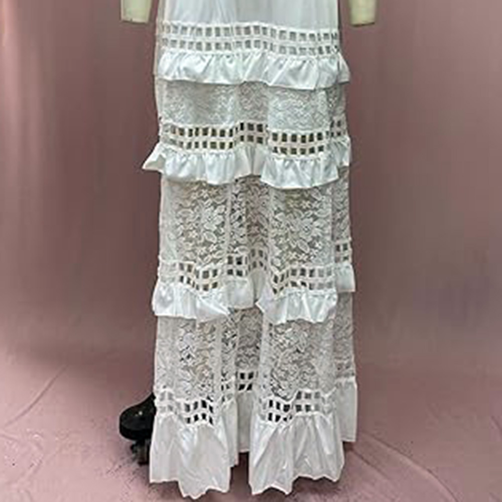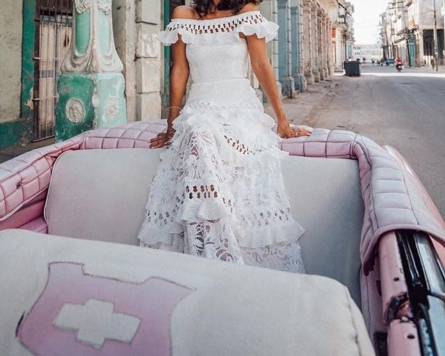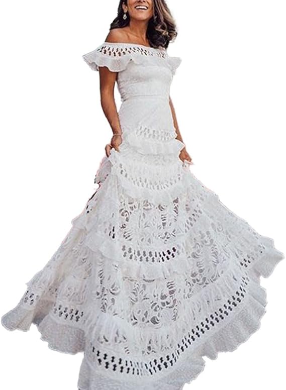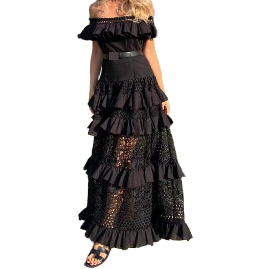 材料:我们的女士露肩连衣裙采用优质材料制成,触感柔软、亲肤、舒适。这款女士露肩及地长裙将为您提供舒适的穿着体验。 特点:摆动式女装的特点是露肩,褶边,镂空,分层,纯色,摆动。这些设计细节赋予女性夏季婚礼宾客礼服时尚优雅的风格。 搭配:女性的褶边连衣裙非常百搭,可以搭配各种下装和配饰。纯色蕾丝及地长裙可以搭配凉鞋、高跟鞋、运动鞋、项链和手镯。它将成为你衣橱里的时尚单品。 场合:女士镂空蕾丝裙适合外出、俱乐部、聚会、夜游、假日、周末、购物、家居、日常穿着、节日。女人的拖地长裙让你很容易吸引别人的目光。 注意:建议用冷水手洗或机洗,不要漂白,低熨烫,悬挂或晾干。