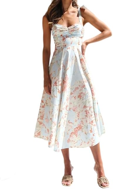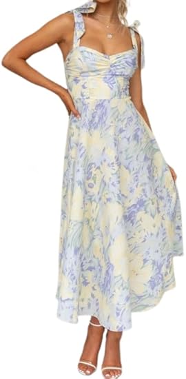 新颖的设计:女式长连衣裙的特点是有甜心领口,系带和宽松的款式。印花设计,使领带带裙优雅时尚。女士波西米亚束腰及地长裙展现出你纤细的腰身和身体曲线。这种女士的夏装提供了一个俏皮和年轻的外观 穿着舒适:性感连衣裙主要材质为涤纶,透气、柔软、亲肤,带给您愉悦的穿着体验,让您享受舒适。飘逸的连衣裙宽松合身,善于遮掩肚子 搭配:印花夏季迷你裙可以单独搭配运动鞋、凉鞋和高跟鞋,还可以搭配牛仔夹克、运动夹克、风衣和连帽运动衫。整天保持舒适和时尚,展示你的美丽在波西米亚裙。宽松的连衣裙让你展现出独特的魅力 场合:女性的夏季碎花飘逸连衣裙非常适合休闲的夜晚外出、毕业派对、海滩散步或旅行。飘逸的连衣裙也适用于购物、日常生活、外出、俱乐部之夜外出、烧烤、聚会、晚宴。穿一件露背裙来享受一个美妙的海滩假期 衣物护理:休闲及地长裙可用软质洗涤剂洗涤,冷水轻轻机洗,禁止漂白剂漂洗
