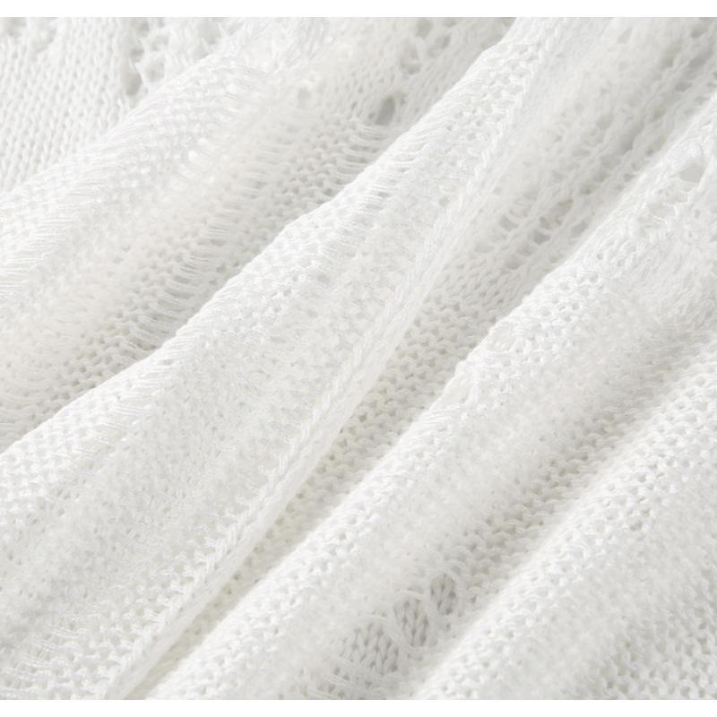 Spring Style Stylish and Tattered Hollowed Out Top Features Niche Design with Laid Back Look and Long Sleeved Smocks