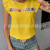 女式花钩针编织夏季上衣2025褶边帽袖圆领T恤镂空休闲基本T恤