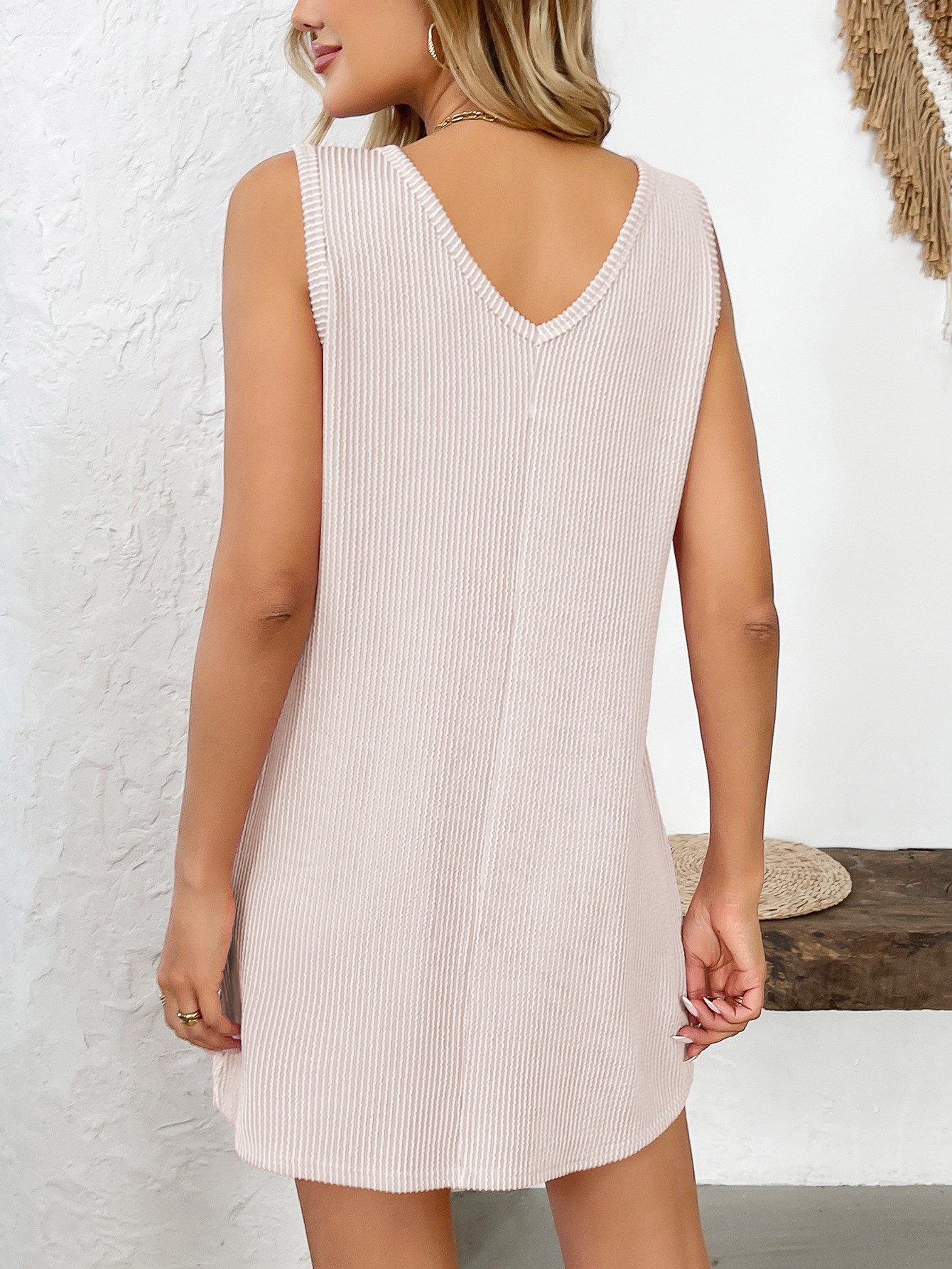 Women's Summer V-Neck Sleeveless Tank Dress Solid Color Cottagecore Minimalist Lightweight Casual Dresses Beach-to-Brunch Sundress with Pocket