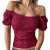 Women Off Shoulder Going Out Tops Mesh Puff Short Sleeve Summer Crop Top