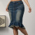 女士牛仔迷笛裙地中海蓝色及膝长度夏季高腰分a线鱼尾牛仔裙