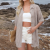 女式短袖2025夏季钩针短开衫V领纽扣波莱罗耸肩毛衣